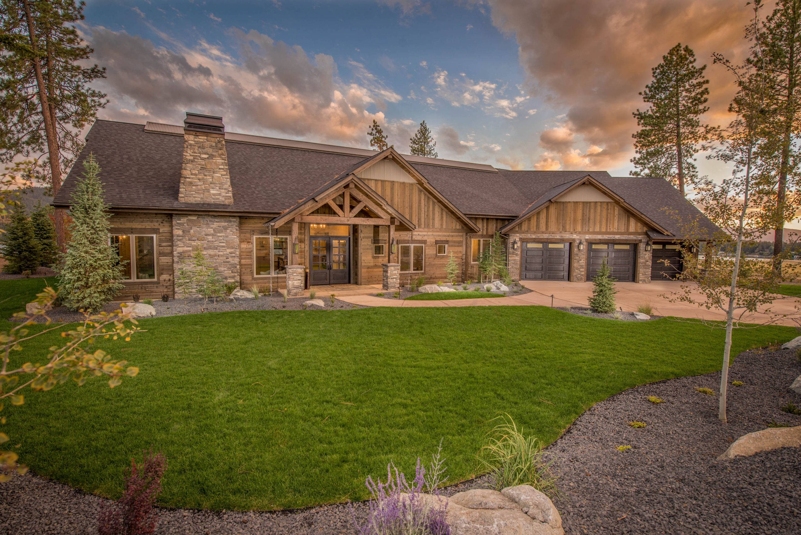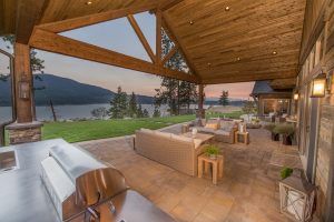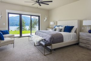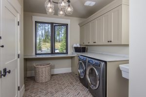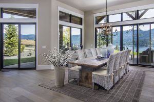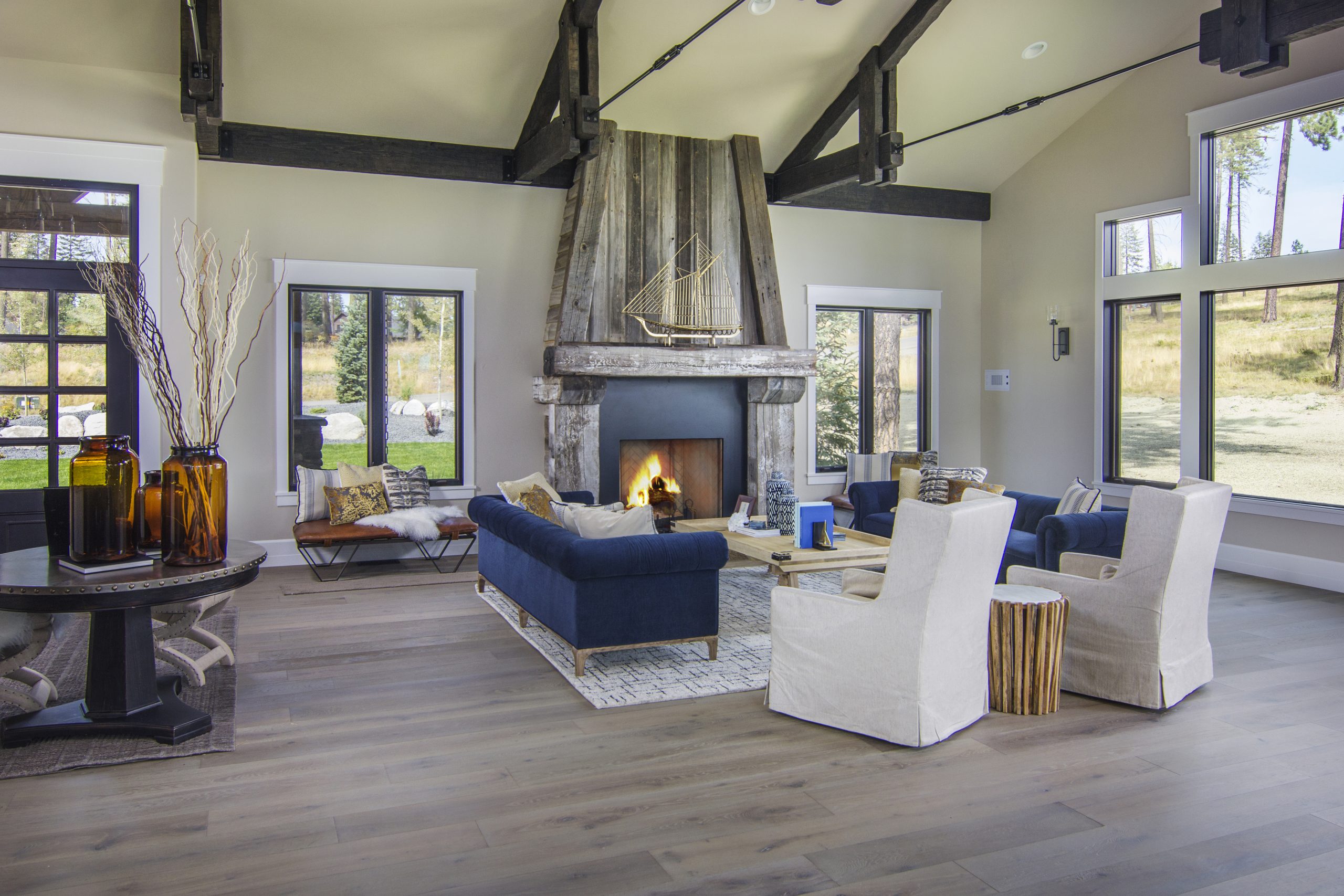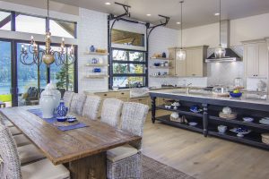Crisp white interior finishes and an open concept give this modern farmhouse a fresh, airy feel. Add to the mix a custom reclaimed wood fireplace, exposed beams, and spectacular views, and you’ve got a home that will be the envy of all the neighbors.